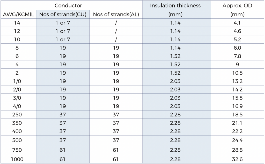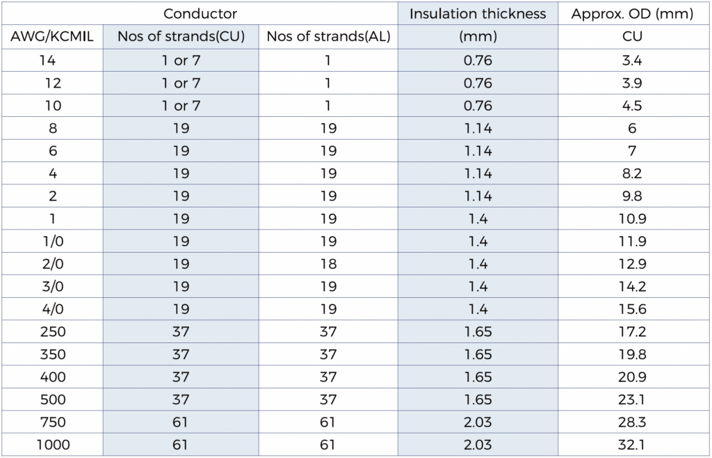 • Insulation: Cross-Linked Polyethylene (XLPE)