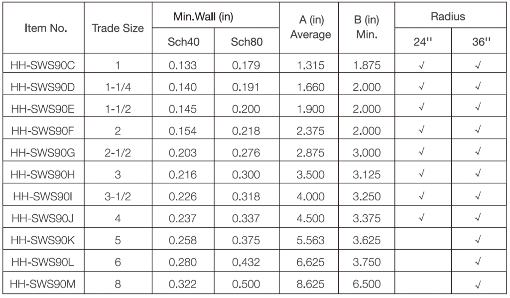 Sch40 & Sch80 90° Special Sweep Elbows – Bell End