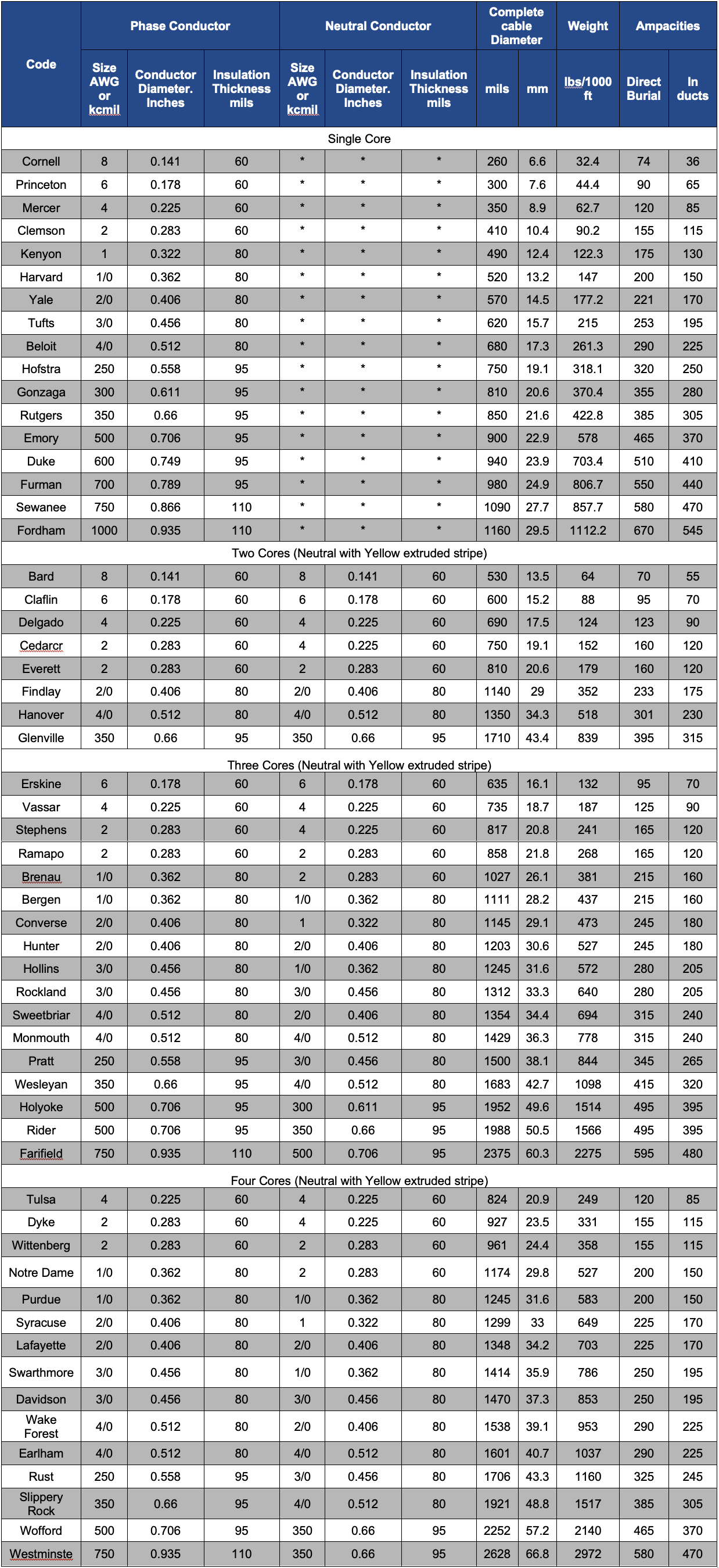 Type secondary URD cable can be used for secondary distribution and underground service at 600 volts or less, either direct burial or in ducts.