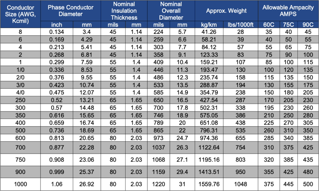 • Insulation: crosslinked polyethylene (XLPE)
